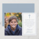 Dusty Blue Modern Photo First Holy Communion Tack Kort