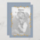 Dusty Blue Modern Photo Guld Löv Bröllop Menu Meny