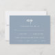 Dessa elegant, minimalistiska bröllop-svarskort har vit, modern manustypografi och ren, sans serif-text för en enkel och snyggt dammig blå design som du kommer att använda i kärlek. Det finns utrymme att lägga till dina gästalternativ för val av måltid eller val av måltid.