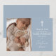 Dusty Blue Modern Script Foto Dopning Dopceremoni Tack Kort