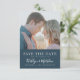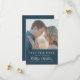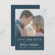 Dusty Blue Modern Typography Simple Photo Bröllop spara datum-inbjudningskort. Låt er familj, vänner och kolleger veta att ni har fastställt ett datum för ert bröllop firande med detta elegant, snyggt och det moderna bröllop spara datum-inbjudan. Alla texterna är i förväg ordnade så att du enkelt och snabbt kan anpassa dig med dina egna detaljer.