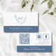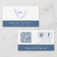 Dusty Blue Monogram Utandning med Slogan Affärskort... Framsidan av vårt unika affärskort har en elegant botanisk andedräkt som gränsar till dina två monogram initialer i dammig blå bläck på vit bakgrund. Ditt namn och din titel (eller företaget namn) visas i vitt bläck på en dammig blå rektangel som gränsar till affärskortets grund, ge och auktoritativ struktur för att balansera den ömtåliga oljekandningen. På baksidan av kortet finns ditt mobila nummer, social-mediekontaktinformation, webbplats adress och QR-kod som länkar till ytterligare information. I det dammiga blå avsnittet på grund finns ditt företagsmotto eller -tagglinje. Exempeltexten visar för närvarande "Ta alltid den höga vägen" i vit skripttypografi. Om du vill kan du radera texten för motto. All text och QR-koden kan enkelt revideras i anpassningsmallen.