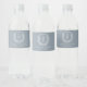 Dusty Blue Monogram Botanical Bröllop Blommigt Vap Vattenflaskor Etikett