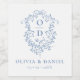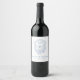 Dusty Blue Monogram Bröllop Blommigt Vapensköld Vinflaska Etikett