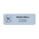 Dusty blue monogram initial returadress för andnin etikett