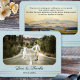 Fotokort från elegant bröllop Tack, med ett eget foto från bröllop, med dammig blå utformning, med gyllene linjer på ena sidan och en målad bergsplats på den andra.