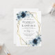 Dusty Blue Navy Blommigt Gold Foil Pastel Bröllop Inbjudningar