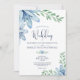 Dusty Blue & Navy Blue Blooms Bröllop Inbjudningar
