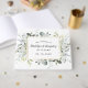 Utformningen har en elegant med guld färgad geometriskt ram på framsidan med eukalyptus och blommigt grey löv i nyanser av grönt, dammblått, grått med mera.