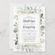 Dusty Blue och Guld Elegant Rustic Blommigt Bröllo Inbjudningar