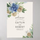Välkomsttecken för kräftblått och elfenbensblått blommigt bröllop