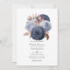 Elegant guld, bröllopsinbjudan för marin och dammig blå blomma med inslag av anpassade för rosa till dina evenemangsspecifikationer. Perfekt för varje tema eller trädgårdsbröllop.
