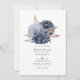 Elegant ro guld, marin och dammig blåblomma bröllopsinbjudan anpassade till dina evenemangsspecifikationer. Perfekt för varje tema eller trädgårdsbröllop. QR-koden på andra sidan går till din bröllop-webbplats där människor kan lära sig mer och osa.
