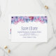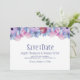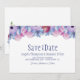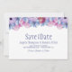 Berätta för dina vänner och nära och kära om dina framtida bröllop-planer med det här eleganten dammiga blått och rosa blommigt bröllop spara-till-datum-kortet.