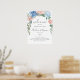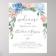 Romantisk blommigt bröllop välkomstskylt designad med ett trädgård med dammiga blått och rosa blommor. Skriv ditt eget tecken med namn och datum, samt ett anpassningsbar-meddelande grund i tecknet.