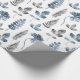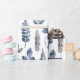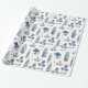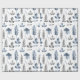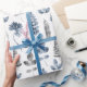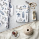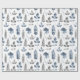 En blå och vit modern blommigt som omsluter papper med en mönster av fern löv och blommigtar i en subducerad upprepning av mönster