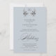 Dusty Blue Olive Branch Monogram Photo Wedding Inbjudningar