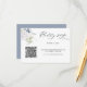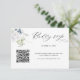 Ladda enkelt upp din egen QR-kod så att gästerna kan söka igenom och OSA online direkt till webbplatsen. Vackert kort med modern manuell kalligrafi inslag och blå och vit blommigt med gröna detaljer. Möjlighet att även lägga till din webbplats adress för dem som föredrar att nå din webbplats på traditionellt sätt. Klicka helt enkelt på knappen "ändra" QR-kod för att ladda upp din egen QR-kod. Tillbaka i blek dammig blå bakgrund färg. Tillgänglig även med rygg i marin eller vit med detaljer om blommigten. En del av vår "Elegant Bliss"-samling med en mängd olika koordinerande inbjudningar, inmatningskort, OSA kort, tillbehör för utskick, spara datumen, tack vare kort och händelsemärkecken och produkter.