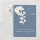 Dusty Blue Orchid Wedding Reception-adapterkort - Det här moderna mottagningskortet har mjuka vita orkidéer på en dammig blå bakgrund för ett tidlöst utseende på eleganten. En perfekt infogar för svartvit bröllop eller formellt firande. cocktail- och middagsdetaljer i en förfinad, blommigt-forward-design.