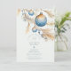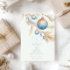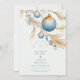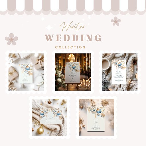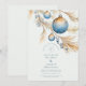 En minimal men ändå elegant-design med frostade blåa julbalkar som hänger från mjukt grenar i guld gräs. Vinterpaletten med vintage och mjuka vattenfärgdetaljer skapar en förfinad och romantisk stämning i helgdag med en boho twist.