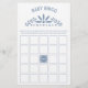 Dusty blue Papel Picado Pojke Shower Bingo-spelkort. Det elegant utformade kortet har en dammig blå design som är försedd med ömtåliga blommor och löv, som är kontrasterad mot en pristinvit bakgrund. På kortets översta sida finns den lekande inskriften "Baby Bingo", som ger en känsla av förväntan och roligt i aktiviteten. Bygg upp den mexikanska folkkonstesten och höj din babydusch i ett verkligt oförglömligt tillfälle med det här fina bingo-spelkortet.