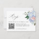 Modern bröllop QR-OSA kort med ljusblå/ dammiga blåa vattenfärgsvätskor med pastellrosa, , persika, vit ros, peonier, sage eucalyptus löv, grenar och löv. Mutta, mjuka och drömmande romantiska skuggor med vår sommarens vattenfärgsdesign för blommigt så att den stämmer överens med bröllop. Hitta fler matchande utformningar och variationer från min "blissweddingpaperie"-butik. Och kontakta mig gärna för ytterligare anpassning eller matchning av objekt.