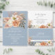 Elegant och romantik: bröllopsprogrammet i blommigten har en dammig blå bakgrund med mjuk persiko- och krämblomning, perfekt för boho eller modernt bröllop. Anpassa båda sidor med information om ceremonier och brudens sida. Designad för en vacker keepé som vägleder dina gäster och kompletterar ditt bröllop-tema. Behöver du hjälp? Ut på bpkolman@gmail.com.