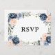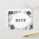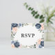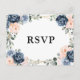 Dusty blå blommig geometrisk bröllops-RSVP-kort med eleganta buketter av marinblå / Dammtor blue, vit , rodnad , persikorosa och salvia gröna eukalyptusblad och elegant glitter geometrisk neutral ram. Vänligen kontakta mig för hjälp med anpassning eller om du behöver någon annan produkt med denna design.