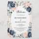 Geometriskt bröllopsprogram för dammblå blommigt med elegant buketter av marin/dammblå, vit, , persikofärgad ro och sage grönt eucalyptus löv och elegant glitter neutralt ram . Kontakta mig om du behöver hjälp med anpassning eller om du behöver någon annan produkt med den här designen.