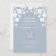Lägg märke till din stora dag med charm och stil med hjälp av den här anpassningsbarna romantiskt Spara datumfotokortet. Framsidan har en fin vit folkvit-stil blommigt ram som på ett vackert sätt framhäver ditt favoritfoto i en mjuk oval form på en dammig blå bakgrund. Elegant Spara datumtexten delar med sig av dina spännande nyheter. På baksidan omger utformningen av den samordnande blommigten namn och information om personligen, inklusive din webbplats för datum och anpassningsbar i bröllop. Med en QR-kod som genereras automatiskt blir det enkelt för gäster att komma åt webbplatsen omedelbart, perfekt för att dela reseinformation, OSA länkar eller bröllop. Designat att matcha sömlöst med vår inbjudan till fullt, så skapar det här kortet ett sammanhängande och minnesvärt utseende dina gäster kommer att se på kärlek. Det är enkelt att anpassa sig, inga hämtningar eller designad software behövs. Klicka bara för att anpassa och redigera online och göra den till din rätta. Finns som ett professionellt tryckt kort eller en högkvalitativ digital nedladdning för enkel e-post eller sms.