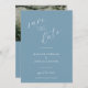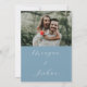 Meddela din speciella dag i stil med detta dammiga blåfoto spara datumkortet. Med en modern layout, en mjuk bakgrund för pastellerna och ett skript i eleganten är det perfekten för att din upphetsning med familj och vänner. Anpassa med din favoritbild för förlovning, namn och bröllop om du vill skapa en personlig nyckelfråga som anger tonen för firande. Idealisk för vår och sommar bröllop passar den här konstruktionen utmärkt ihop med dammig för bröllop.
