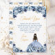 Den här eleganten och det glamorösa Quinceañera-kortet har en vacker prinsessa med mörk hår i en dammig blå boll-grav. Texten kombinerar handskript och modernt sans serif typsnitt för ett klassligt och sofistikerat utseende. Blommigten och guld-konetti skapar perfekten blandning av rustik och chic. Grafik efter www.etsy.com/uk/shop/SunflowerDayLove