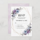 Elegant dammig blå lila lavendel lilafärgad blomster tema bröllops inbjudan med elegant bukett av dammig blå, marinblå, lila, lilafärgad ros blommor knoppar och salvia gröna eukalyptus blad med guld geometrisk ram. Vänligen kontakta mig för hjälp med anpassning eller om du behöver någon annan produkt med denna design.