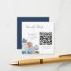 Svarskort för QR-bröllopet OSA har dammig blått och persikoträdgård ro och vit bomull. Det finns utrymme för din egen QR-kod och bröllop webbplats. Visa vår samling för att hitta matchande produkter.