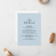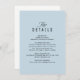 Graceful typography design that blends classy script and modern sans serif font on dusty blue background, simple and unique. Great mini details card for traditional vintage wedding, modern classic wedding and boho retro wedding,