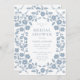 Dusty Blue QR Code White Folk Blommigt Möhippa Inbjudningar