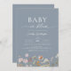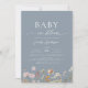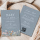 Dusty Blue QR Code Wildblomma Baby i Bloom Inbjudningar