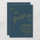 Dusty Blue QR-kod allt i ett Guld-skript Bröllop Inbjudningar
