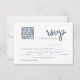 Gör det enkelt och enkelt att svara med Bröllopet OSA Dusty Blue QR Code. Framsidan har en skarp vit bakgrund med dammig blå text i eleganten, som ger gästerna möjlighet att svara via QR-kod eller traditionell e-post, tillsammans med utrymme för menyval. Baksidan visar en dammig blå bakgrund med briden och brudgummens initialer och bröllop-datum i sömnvit text för en personlig och polerad beröring. Perfekt för modernt, elegant eller romantiskt bröllop, det här OSA kort blandar bekvämlighet med tidlös design.