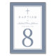 Custom Dusty Blue Religious Cross Boy Baptism Table Number.