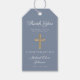 Personalized Dusty Blue Religious Cross Boy Confirmation Gift Tags. Part of the Dusty Blue Cross Boy Confirmation Invitation Suite with matching invitation, stationery and party accessories available.