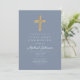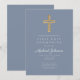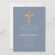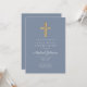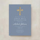 Dusty Blue Religious Cross Boy First Communion Inbjudningar