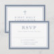 Dusty Blue Religious Cross Boy First Communion RSVP Card.