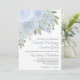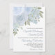Den här vackra bröllopsinbjudan innehåller ett antal handmålade vattenfärger ro i skuggor av dammig blå. I trädgårdens botaniska utformning ingår sprit av sage grönt eucalyptus löv och greenery. Högerna är motiverad ge inbjudan i en modern anda, men typografin har klassiska skriptbokstäver. Elegant, rustik och vacker, den här inbjudan är ett underbart sätt att be dina vänner och din familj att vara i din glädje på din speciella dag.