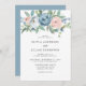 Dusty Blue & Ro Blommigt Watercolor Bröllop Inbjudningar
