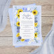 Denna dammiga blåa inbjudan med livliga solblommor och ro är perfekt för ett trädgårdsälsterema. Färg är mångsidigt för ljusblått himmel, guld och gult bröllop färg. Vitblommor är ett vackert tillskott till solrossen och ro gräns.