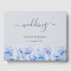 Den här vackra gästen bok i bröllop har en rad blått ro på både framsidan och baksidan med kalligrafteckensnitt för elegant. Anpassa den med namn och bröllop. Bakgrunden färg har ställts in på grått. Du kan välja en annan fyllning i färg för att komplettera ditt bröllop-tema.