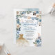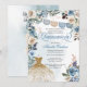 Quinceanera-inbjudan till temat blått och neutralt i land med elegant boll. Den här utformningen har papel picado bunting, underbar för land/ranch/westernare stil Quince Anos firande