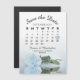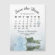De här vackra magneterna sparar datumkalenderkorten på ett underbart sätt att låta din familj och dina vänner få veta om ditt kommande bröllop. Utformningen innehåller ett foto av en långlivad ljusdammig blått eller pulverblått färgad ro som ljuger på sin sida och som reflekterar i bassäng i vatten med vågar och krämer. Kalendern har ett sött hjärta som du kan sätta runt bröllop-datumet. De här korten är enkla och elegant.