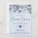 Dusty blue romantisk blommigt på ljusblå möhippa blommigt inbjudningskort för möhippa. Anpassa namn, data och information.